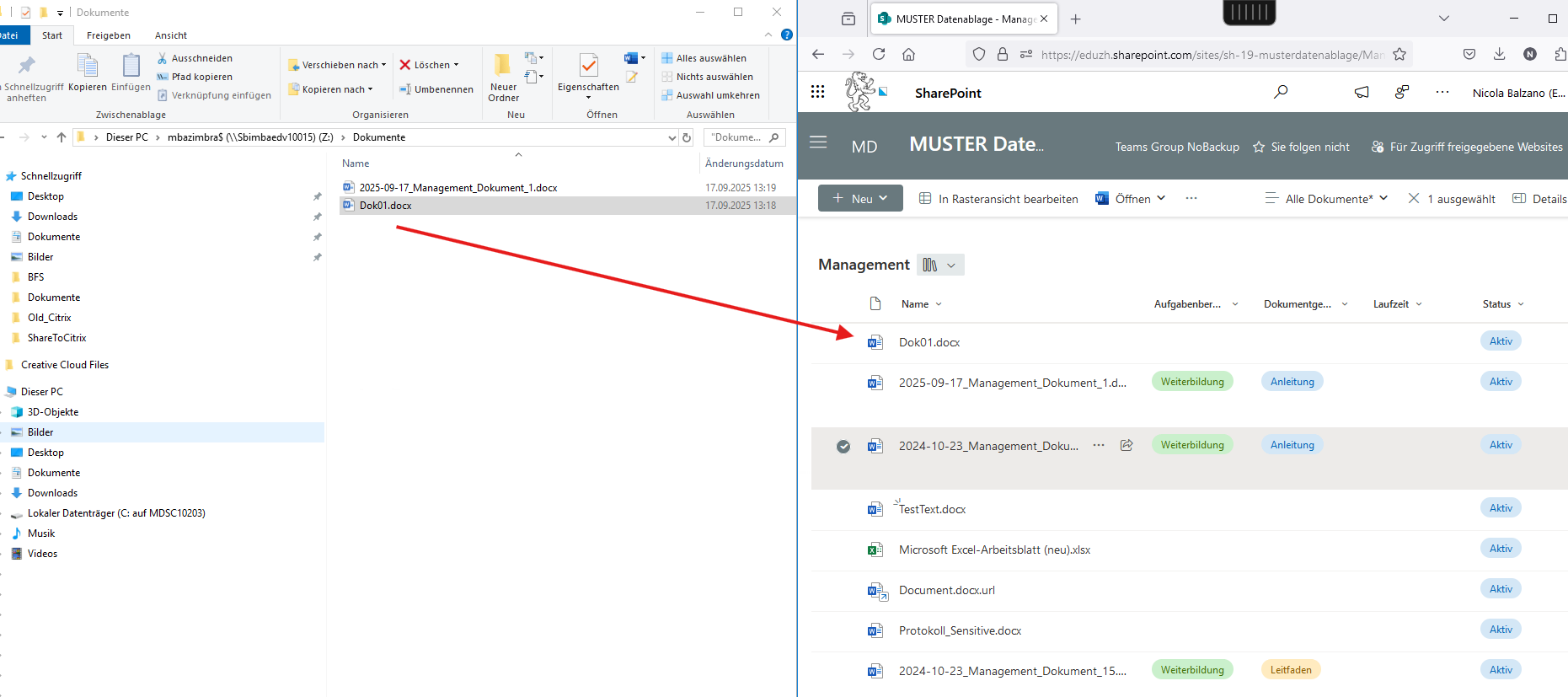 Das Dokument befindet sich jetzt in der gewählten SharePoint-Datenablage: