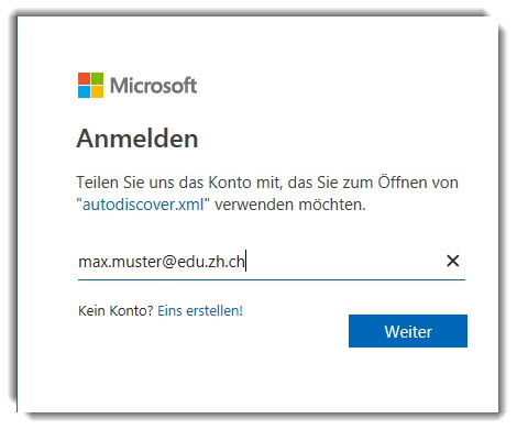 Wenn bereits ein anderes Konto angemeldet ist, "Konto wechseln" auswählen: