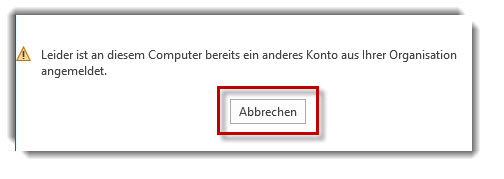 Sobald eine Office-Applikation geöffnet wird, muss darauf geachtet werden, dass man mit dem richtigen Konto angemeldet ist, das Zugriff auf die betreffende SharePoint-Datenablage hat. Manchmal erscheint das Konto zwar bereits als angemeldet, dennoch muss man sich erneut anmelden, bis die Fehlermeldung verschwindet: